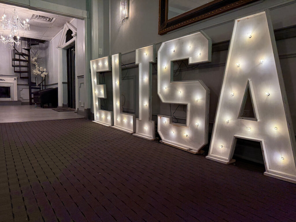 • Photo booth & backdrop areas.
